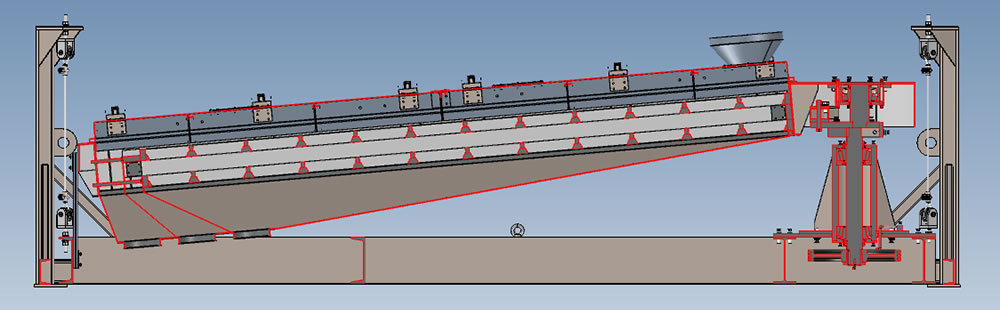 غربال العلف الدوار من فئة SFJH يتكون بشكل رئيسي من آلية اتزان الوزن المدارة بالسير V وآلية الدعم المرنة في المؤخرة، والتي تجعل من المواد تدور على سطح العمل للجسم الدوار الأفقي، لذك كفاءة الغربلة عالية والإهتزاز منخفض. داخل بوابة التفريغ للغربال تتميز بالتصميم الانسيابي، والذي يجعل المواد لا تستقر وتمنع حدوث الأخنلاط الملوث على طول المواد المختلفة.